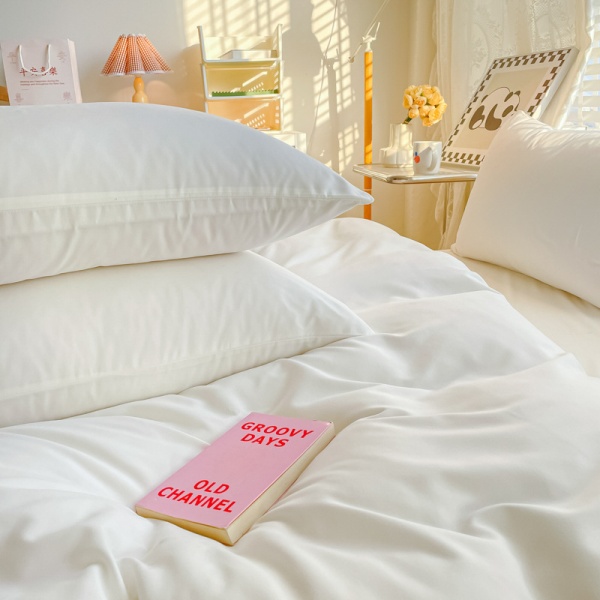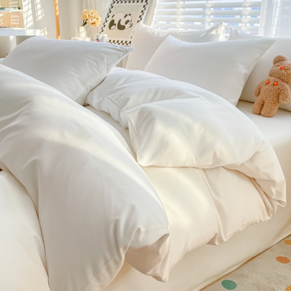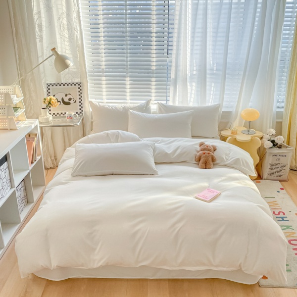 简约纯色亲肤棉酒店四件套白色床单被套床笠三件套床上用品批发