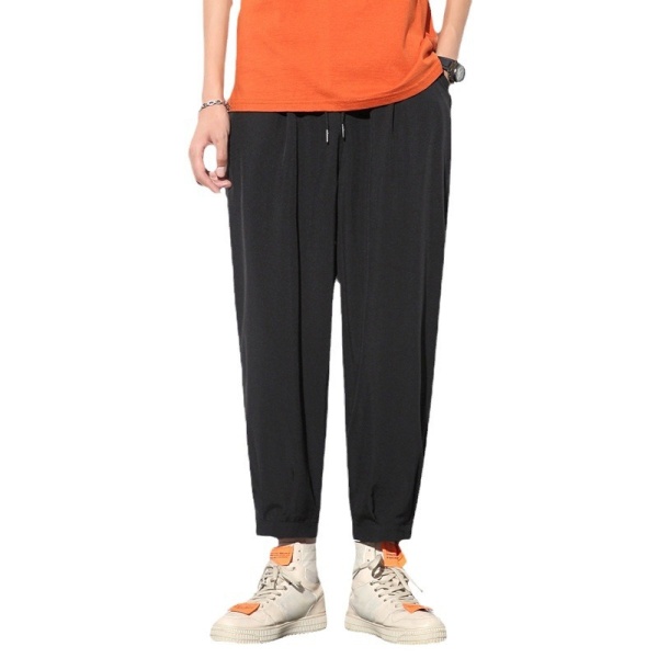 商品属性 [上市年份/季节] 2024年夏季 [主要下游平台] ebay,亚马逊,wish,速卖通,独立站,LAZADA [主要销售地区] 非洲,欧洲,南美,东南亚,北美,东北亚,中东 [主面料成分] 聚酯纤维(涤纶) [主面料成分的含量] 95 [厚薄] 薄款 [原创设计货源] 是 [图案] 纯色 [工艺] 免烫处理 [库存类型] 整单 [弹力] 微弹 [是否库存] 是 [是否有腰带] 有腰带 [是否跨境出口专供货源] 是 [有可授权的自有品牌] 否 [有无质检报告] 否 [材质功能] 透气 [款式] 基本款 [款式细节] 撞色 [淘货类别] 青春流行(18-24岁) [类别] 运动休闲裤 [腰型] 中腰 [裤型] 宽松型 [裤脚口款式] 小脚 [裤长] 九分裤 [裤门襟] 系绳闭襟 [误差范围] 1-2CM [货源类别] 现货 [适合人群] 大码 [适合季节] 夏季 [适用场景] 休闲 [面料] 冰丝 [面料名称] 冰丝 [风格] 韩版