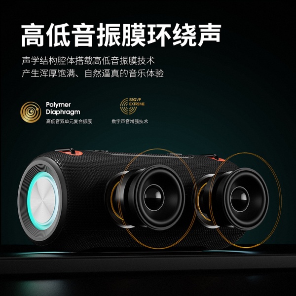 TWS互联、免提通话、蓝牙/TF卡/U盘/AUX音频播放