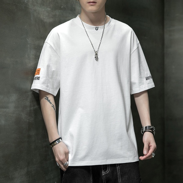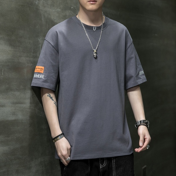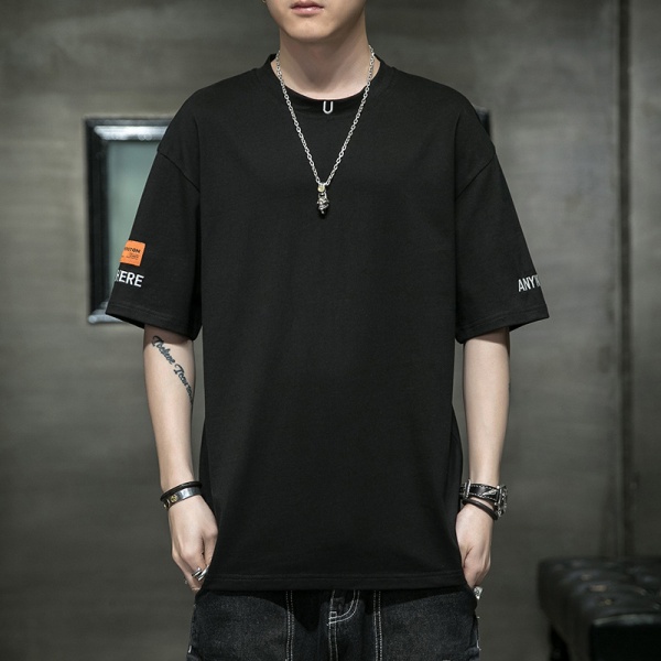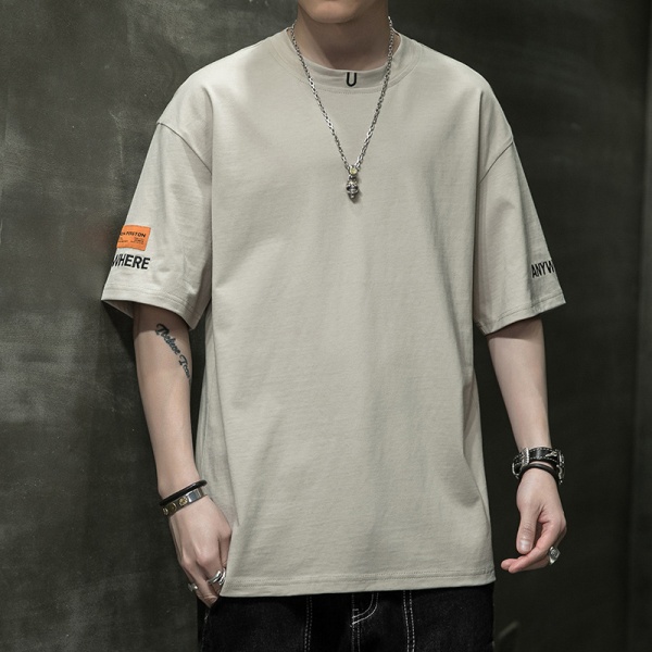 2025夏季短袖t恤男装圆领休闲半袖打底衫潮牌上衣刺绣T恤男士