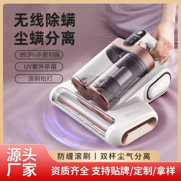跨境新款超声波强吸力滚刷双尘杯拍打过滤除紫外线杀菌除螨仪批发