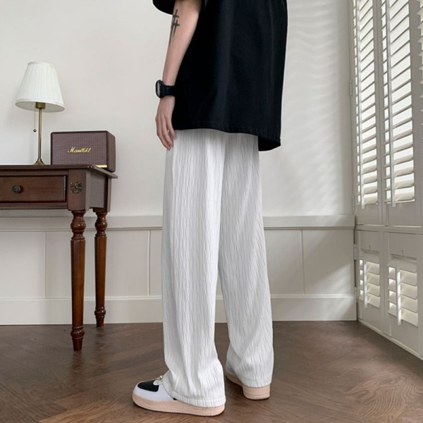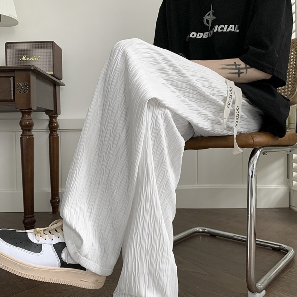 裤子男款夏季潮流宽松阔腿休闲长裤新款潮牌直筒裤纹理感痞帅