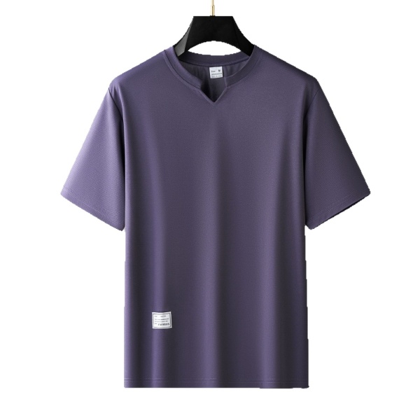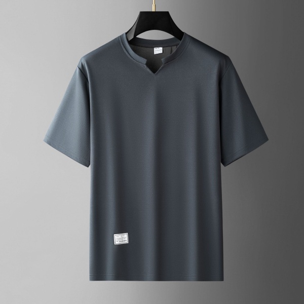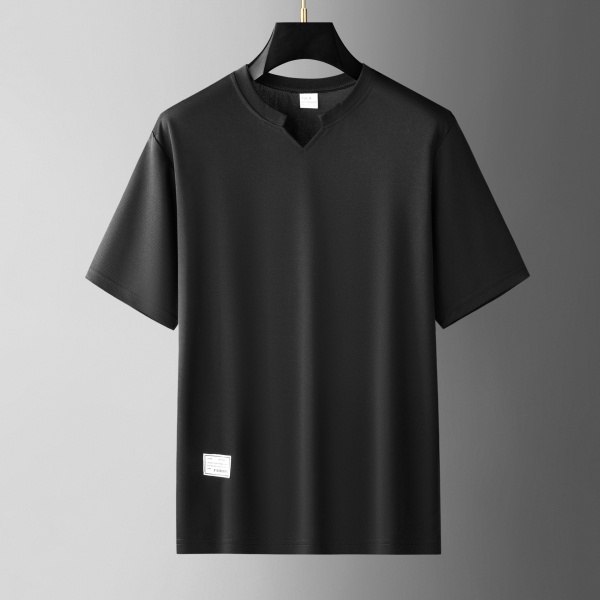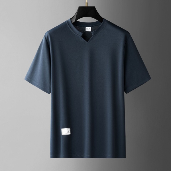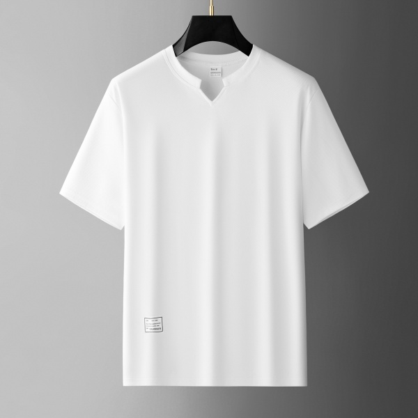 跨境男装夏季轻奢百搭短袖V领透气时尚短袖T恤休闲上衣