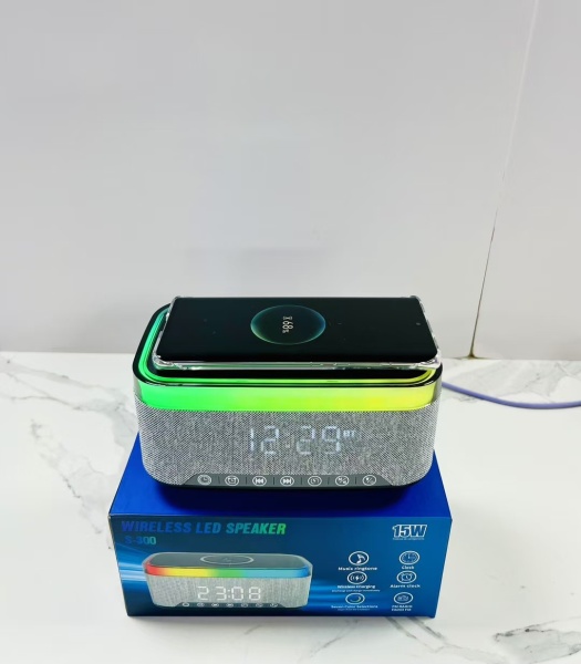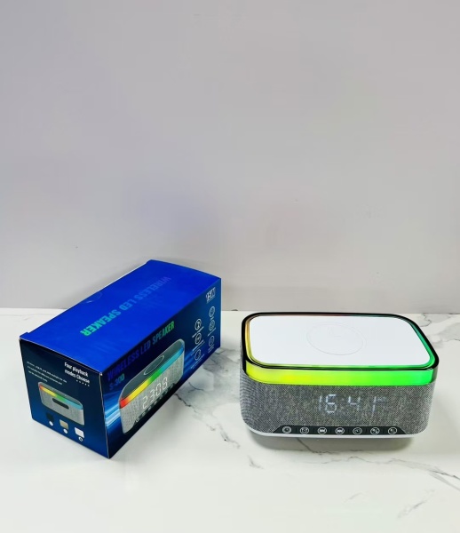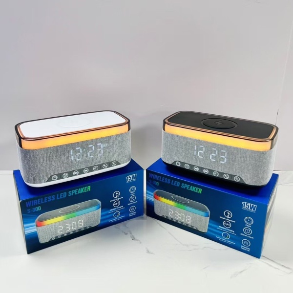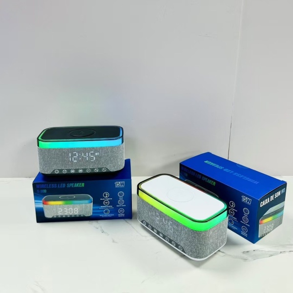 新款白噪音蓝牙音箱无线充电数字时钟闹钟三合一无线充氛围灯音响