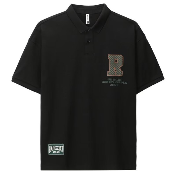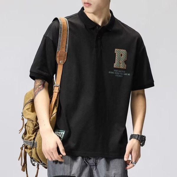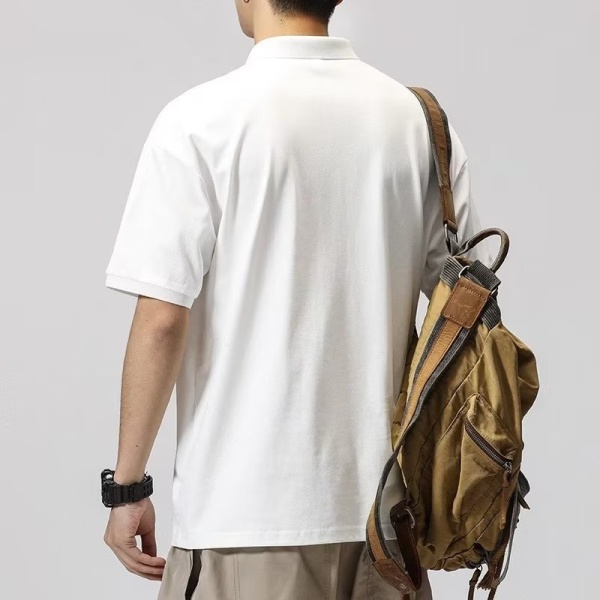 日系polo衫短袖翻领T恤男设计感小众宽松高级感痞帅工装衬衫体恤
