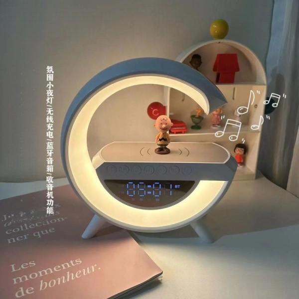 蓝牙音箱无线充电多功能氛围小夜灯闹钟生日手机台灯音响揽月
