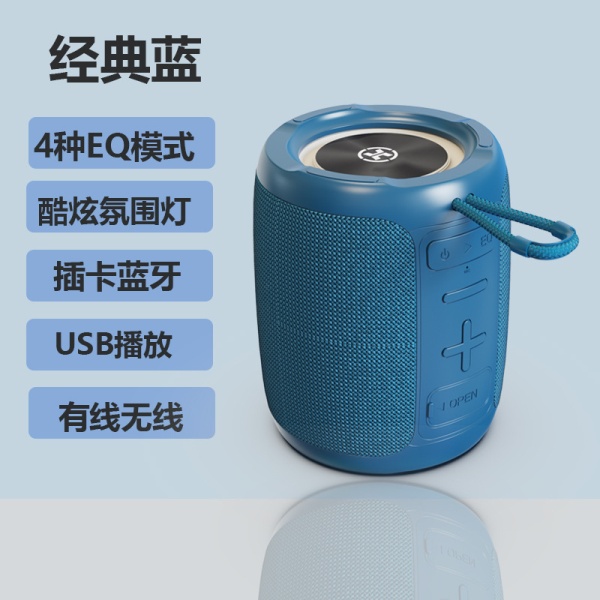 商品属性 [EQ模式] 可调4种EQ模式 [上市时间] 2024 [主要下游平台] wish,速卖通,独立站,LAZADA,其他 [主要销售地区] 日韩,非洲,韩国,日本,欧洲,南美,东南亚,北美,东北亚,中东,拉丁美洲,欧美 [产品净重] 400 [信噪比] ≥75dB [内置蓄电池容量] 1200mAh-2000mAh(含) [售后服务] 店铺三包 [喇叭数] 1 [外观尺寸] 105*130 [是否专利货源] 否 [是否内置电池] 内置电池 [是否外贸] 是(本商品仅供外贸用途,可能不符合境内产品标准。请境内买家谨慎购入。) [是否跨境出口专供货源] 是 [有效距离] 15米 [电源方式] USB [箱体材质] 塑料 [英文名] wireless speaker with EQ adjustable [蓝牙版本] 5.1 [认证类型] ce,ROHS [连接方式] 蓝牙连接 [适用场景] 健身运动,户外,居家,移动便携,K歌,直播,广场舞,广播系统,户外草坪,其他 [防水等级] IPX 4 [附加功能] 插卡 [频响范围] 20Hz-20KHz [额定功率] 13 [额定电压] 5