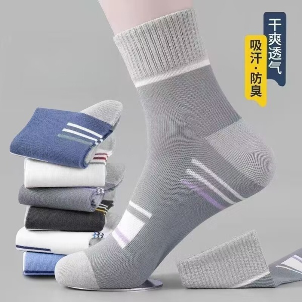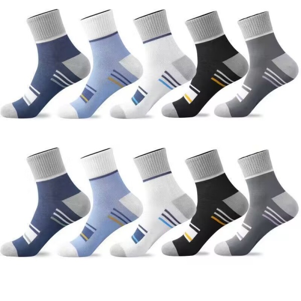 诸暨袜子男士春秋运动款中筒袜吸汗透气拼色条纹袜秋冬季男袜批发