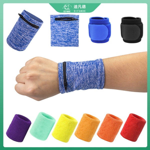 护腕拉链口袋印刷logo腕带吸汗运动健身跑步篮网球透气针织护手腕