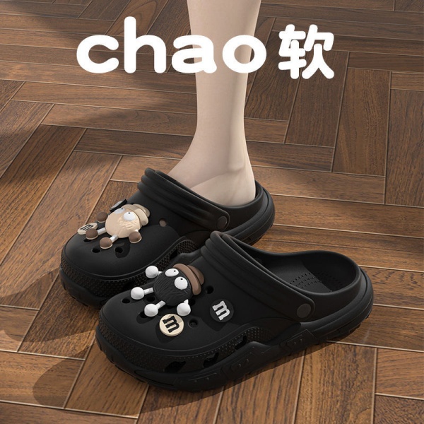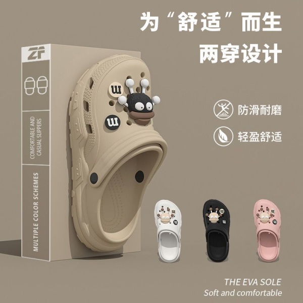 煤球洞洞鞋男夏季外穿踩屎感软底运动沙滩防滑防臭厚底包头凉拖鞋