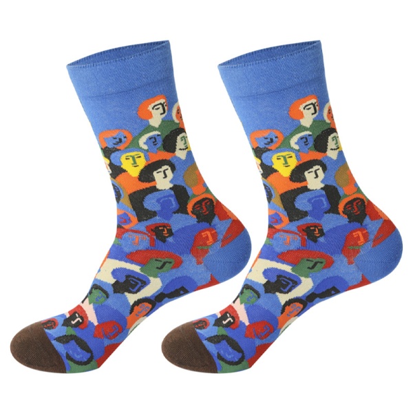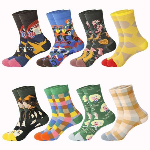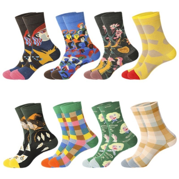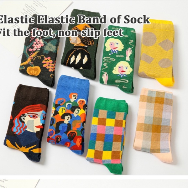 欧美油画袜子男中筒袜潮流时尚休闲棉袜户外滑板长筒袜诸暨女袜