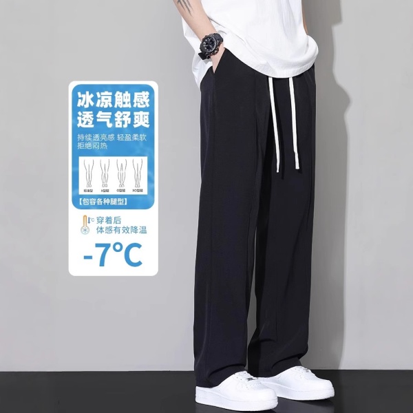 NASA冰丝休闲裤男士夏季2025薄款阔腿西裤休闲直筒速干运动长裤潮