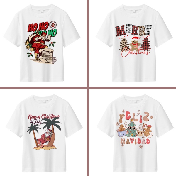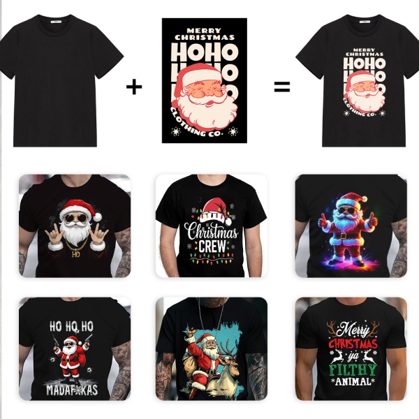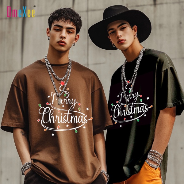 夏季跨境新款男装圣诞树图案印花短袖男士上衣宽松潮美式休闲T恤