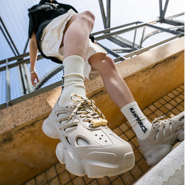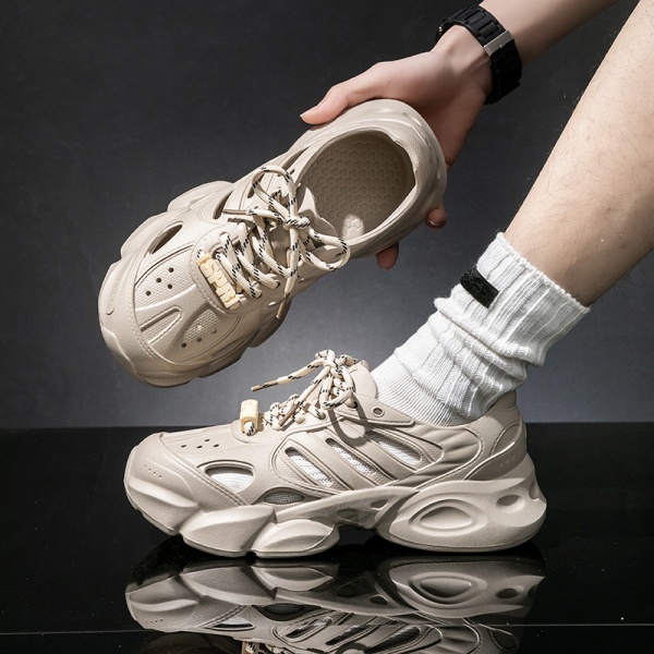 老爹洞洞鞋男夏季外穿厚底涉水漂流沙滩鞋轻便时尚系带运动凉鞋男