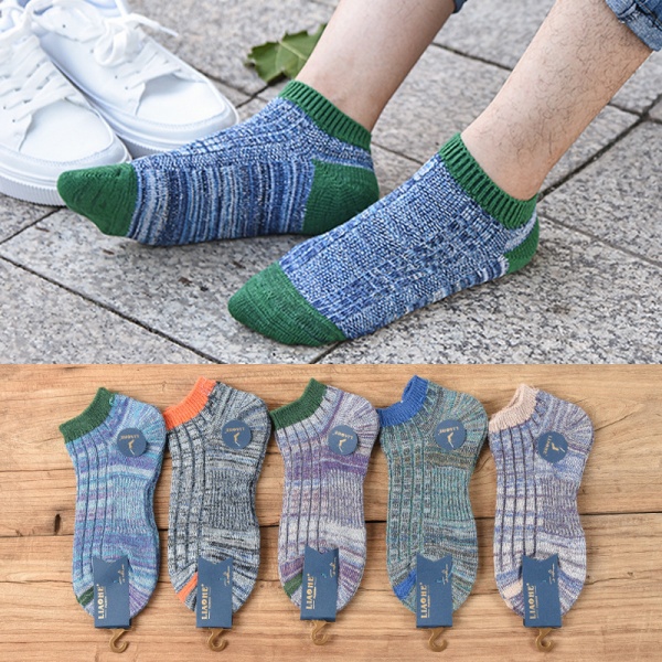 商品属性 [上市年份/季节] 2025年春季 [主面料成分] 棉 [主面料成分含量] 70%(含)-80%(不含) [主面料成分的含量] 80 [产品年龄分类] 成人袜 [产品类别] 普通休闲袜 [产地] 辽源 [功能] -1,吸汗 [包装形式] 袋装 [图案] 拼色 [成分及含量] 75 [无骨缝制] 否:机器缝头 [是否外贸] 是 [是否跨境出口专供货源] 是 [是否进口] 否 [筒高] 短筒 [适合季节] 春季 [适用年龄段] 青年(18-40周岁),少年(13-18周岁) [适用性别] 男 [面料名称] 彩棉