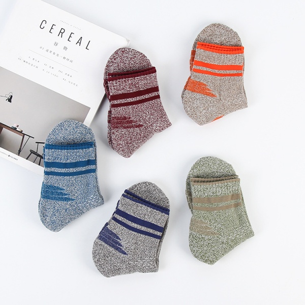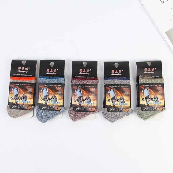 商品属性 [主面料成分] 棉 [主面料成分的含量] 60 [产品年龄分类] 成人袜 [产品类别] 运动袜 [产地] 诸暨 [功能] 透气,吸汗,防摩擦 [包装形式] 卡装 [厚薄] 加厚 [双针袜] 是:双针袜 [图案] 复合色 [工艺] 拉毛 [无骨缝制] 否:机器缝头 [是否外贸] 否 [是否库存] 否 [是否支持代工] 不支持 [是否支持贴牌] 不支持 [是否进口] 否 [筒高] 中筒 [货源类别] 现货 [适合季节] 冬季 [适用性别] 男 [针数] 168N [面料名称] 全棉 [风格] 运动