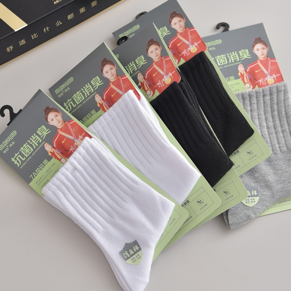 商品属性 [上市年份/季节] 2024秋季 [上市时间] 2024年秋季 [主面料成分] 棉 [主面料成分含量] 50%(含)-70%(不含) [产品类别] 普通休闲袜 [产地] 辽源 [功能] 速干,抗菌,吸汗,防臭 [包装形式] 袋装 [图案] 纯色 [成分及含量] 100 [无骨缝制] 否:机器缝头 [是否跨境出口专供货源] 否 [是否进口] 否 [筒高] 中筒 [织造方法] 单针 [适合季节] 冬季,春季,秋季,四季通用 [适用年龄段] 青年(18-40周岁),少年(13-18周岁) [适用性别] 中性/男女均可 [针数] 200N [面料名称] 精梳棉 [风格] 运动
