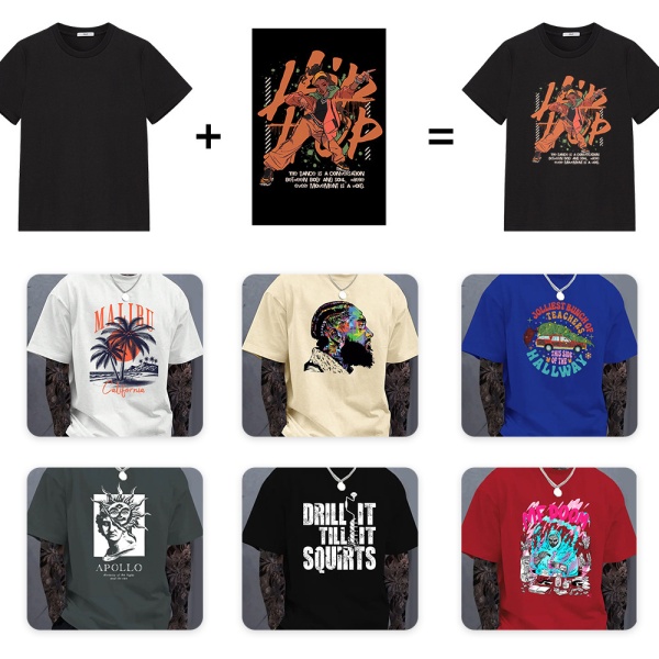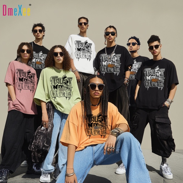 跨境夏季男装潮流t恤男潮牌短袖宽松圆领上衣美式复古T恤英文批发