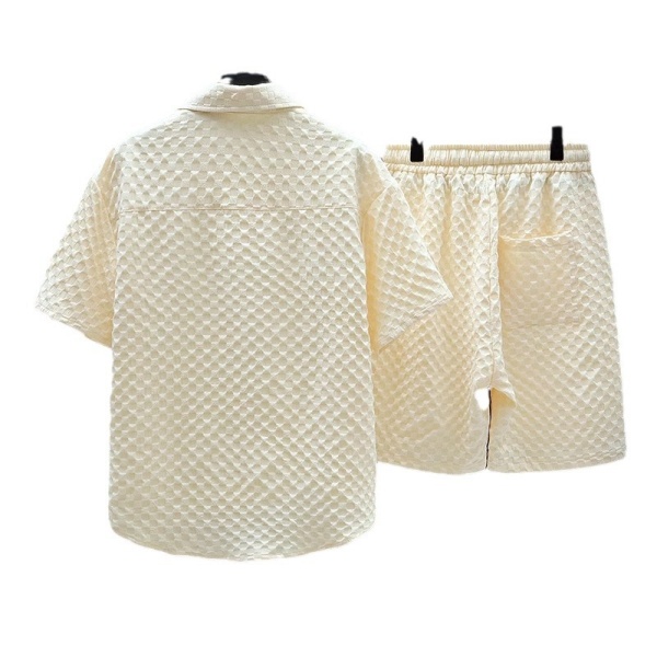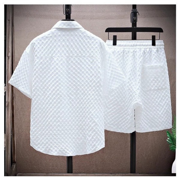 薄款运动休闲两件套2024夏季冰丝套装男痞帅潮流短袖衬衫短裤一套