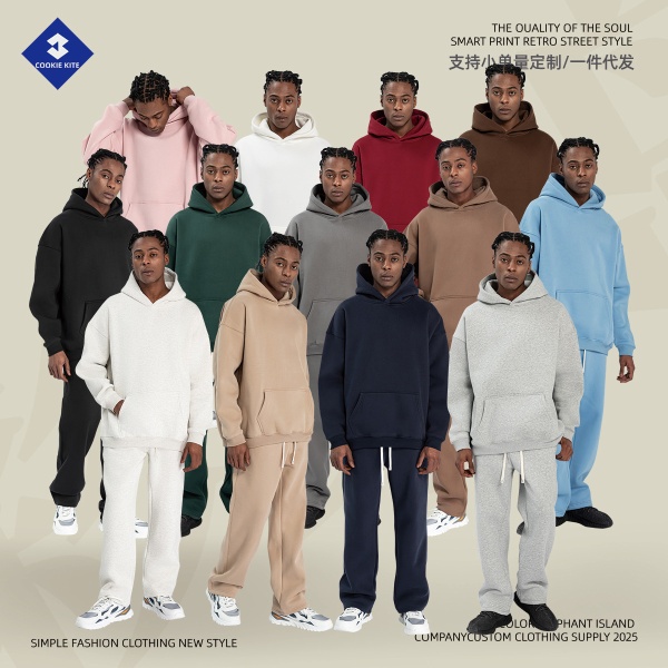 KITE男装秋冬卫衣男士连帽衫外套宽松加绒美式潮牌350g连帽卫衣男