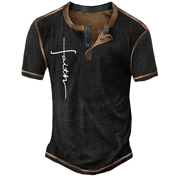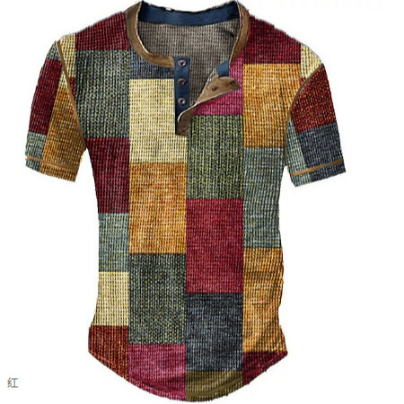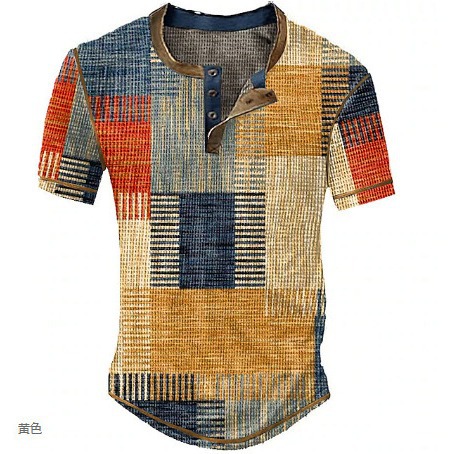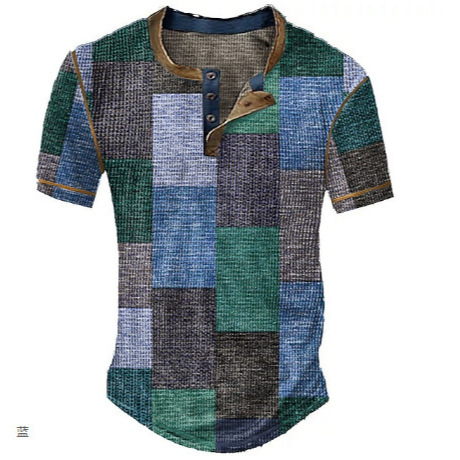 跨境男士t恤休闲数码印花宽松短袖扣子Polo衫亨利领T恤男外贸货源