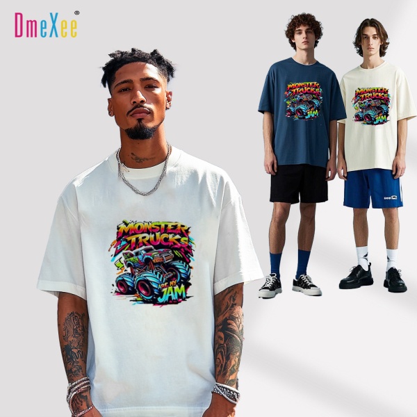 外贸热卖重磅潮牌男装t恤小领口oversize休闲短袖男涤纶上衣批发