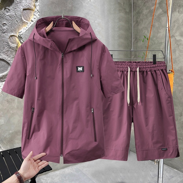 2025新款速干大码运动套装男士夏季胖子宽松连帽短袖t恤短裤男装