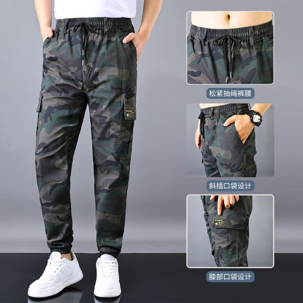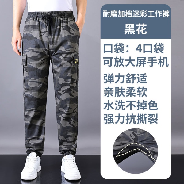 男工作裤加裆夏季薄款耐磨宽松束脚工作服裤子透气弹力多兜工装裤