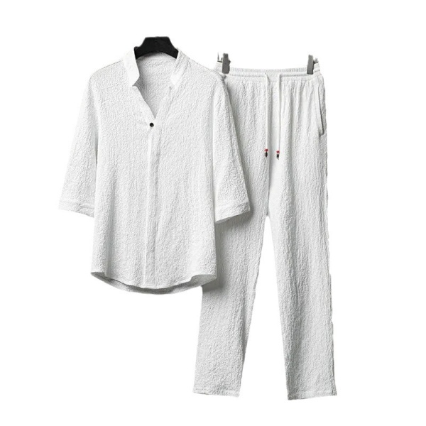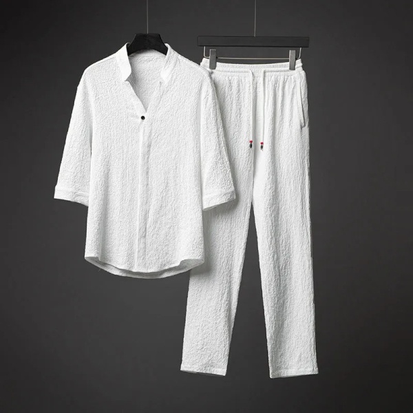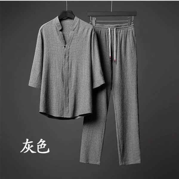 爆款男装轻奢超薄五分袖套装男夏季大码宽松中袖两件套2025批发