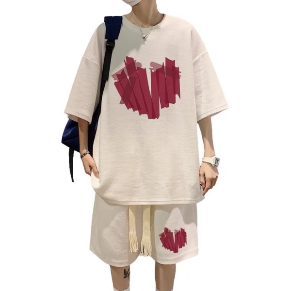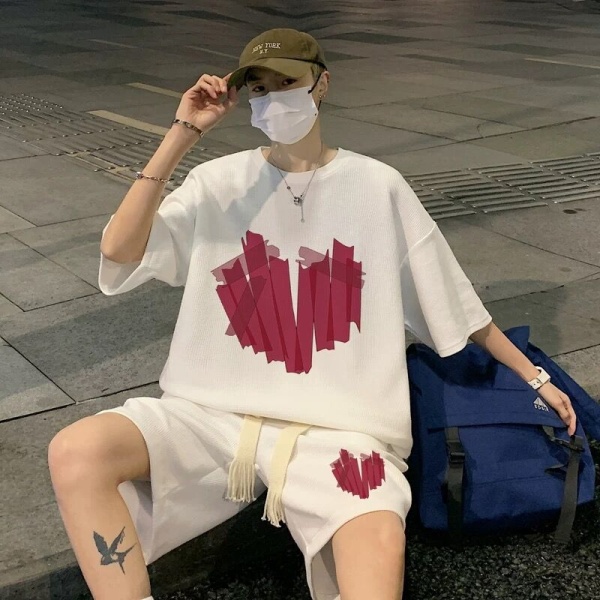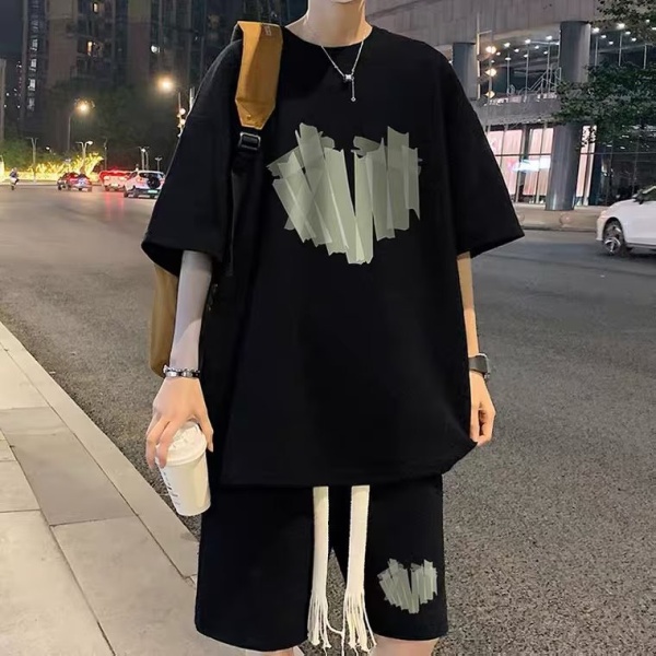 短袖t恤男士夏季套装潮牌ins宽松运动短裤一套搭配运动篮球两件套