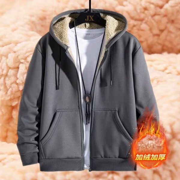 秋冬季羊羔绒外套男重磅加绒加厚男士卫衣黑色上衣青少年连帽开衫