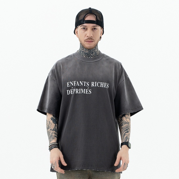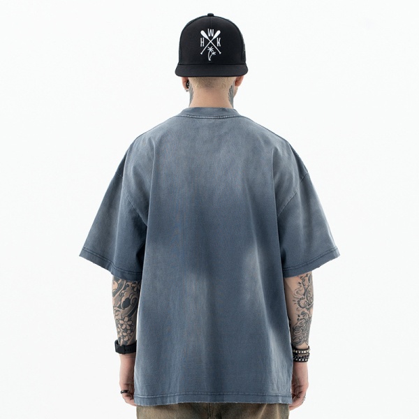 澜海男装2025春夏新品潮牌erd高街水洗渐变做旧oversize短袖T恤男