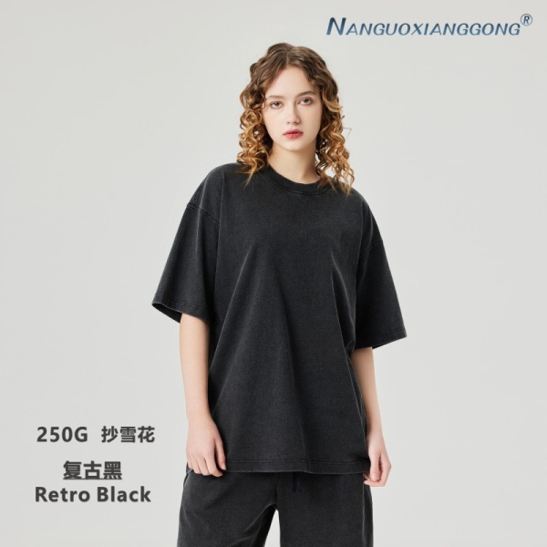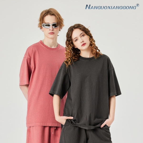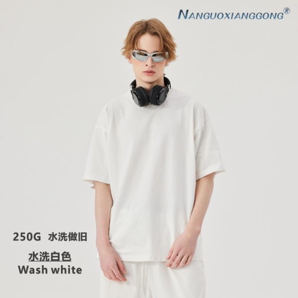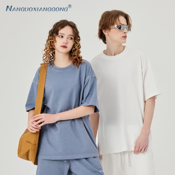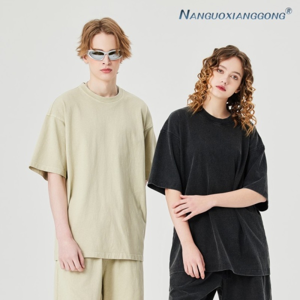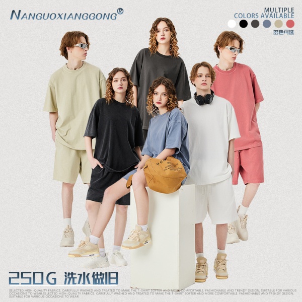 男装|复古做旧工艺高街水洗短袖男士t恤潮牌宽松纯棉圆领情侣上衣