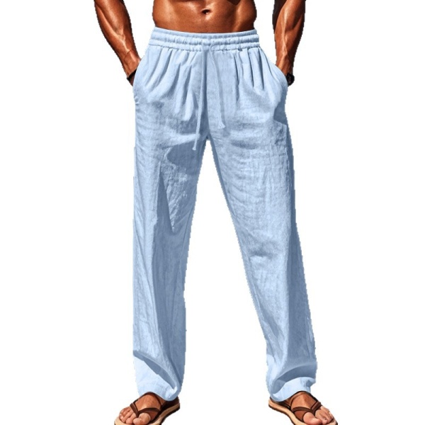 2025亚马逊速卖通欧美春夏新款季男士透气亚麻宽松休闲运动长裤男