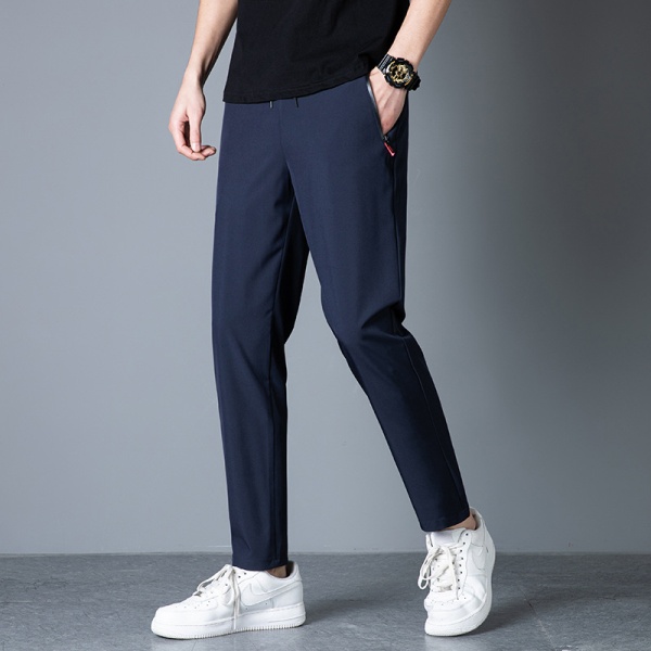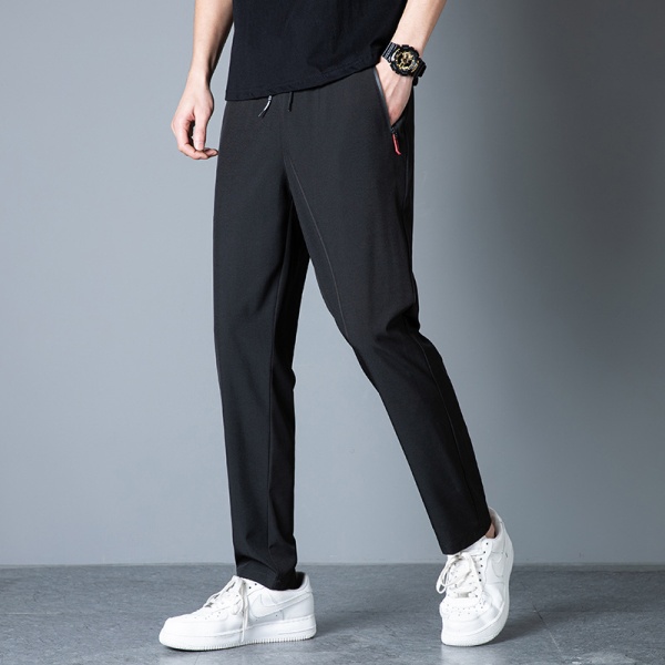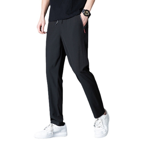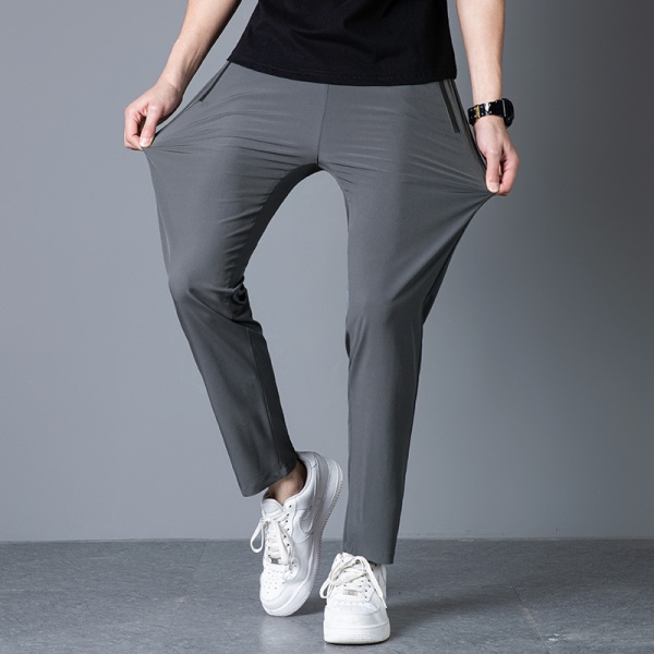 夏季冰丝长裤薄款透气冰凉弹力直脚直筒拉链男休闲裤速干运动裤男