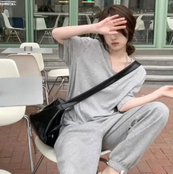 【厂家直销】纯色大领口短袖t恤女宽松休闲显瘦内搭V领打底衫潮牌