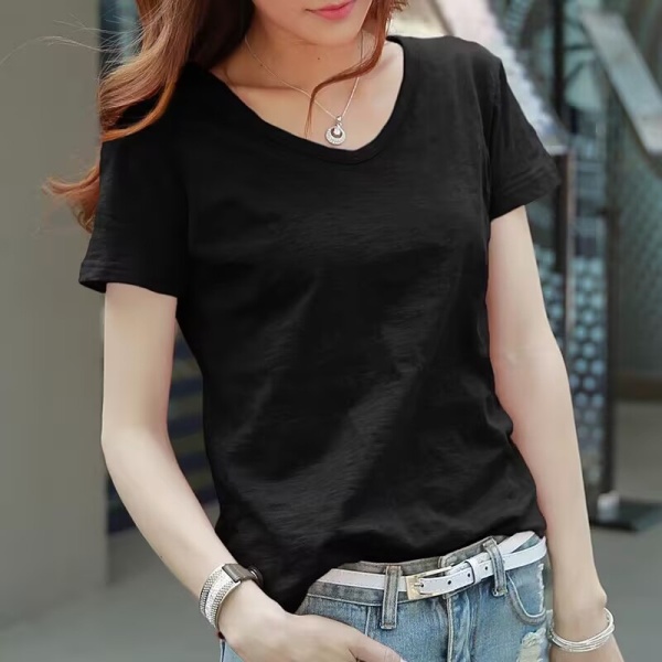 商品属性 [上市年份/季节] 2025夏季 [主要下游销售地区1] 中东 [主面料成分] 棉 [主面料成分含量] 30%以下 [产地] 中国 [是否跨境货源] 是 [款式] 套头 [版型] 宽松型 [衣长] 普通款(50cm<衣长≤65cm) [袖型] 常规袖 [袖长] 短袖 [跨境风格类型] 舒适休闲 [面料名称] 竹节棉 [面料成分含量] 其他 [领型] V领 [风格] 通勤风 [风格类型] 气质通勤