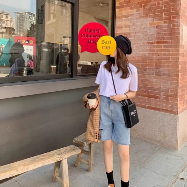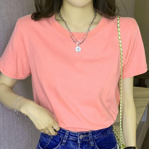白色正肩纯棉短袖t恤女夏季新款100%纯棉显瘦内搭宽松圆领上衣