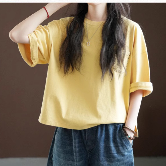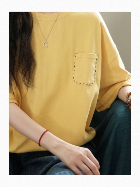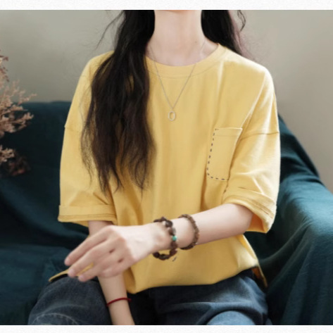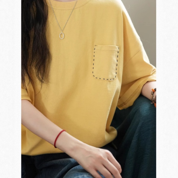 阳光口袋|手缝细节宽松休闲圆领T恤25夏季新款短袖上衣女装