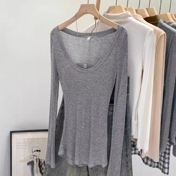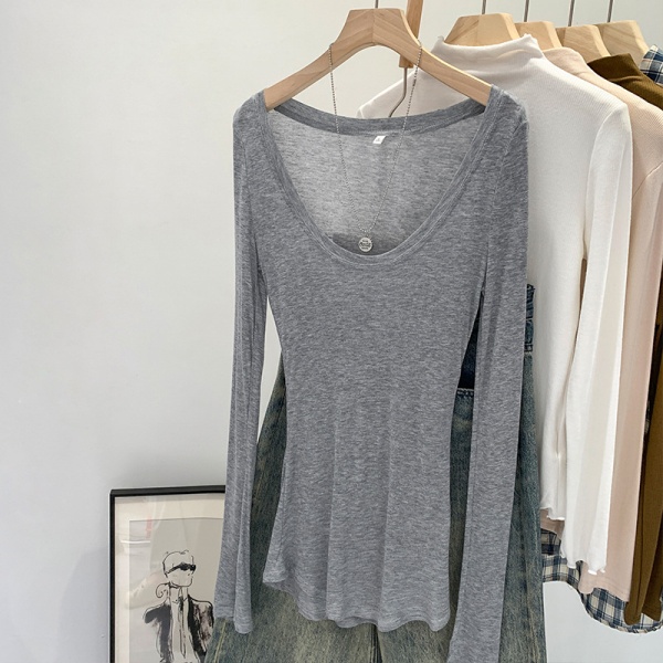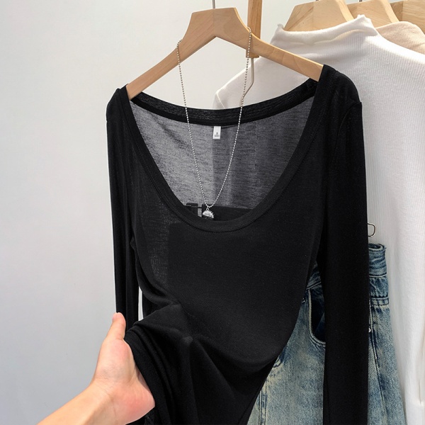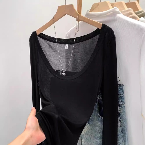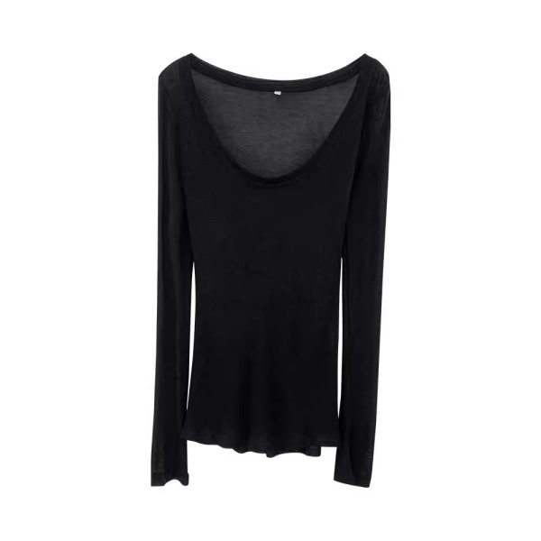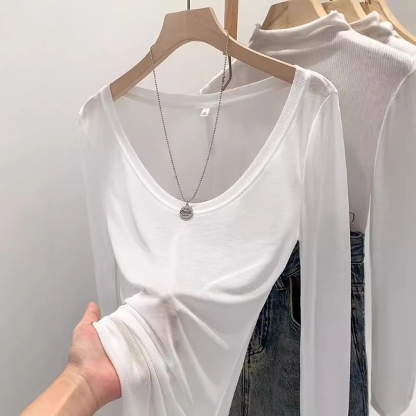 天丝亲肤薄款微透修身纯欲辣妹白色u领防晒打底罩衫T恤女早秋上衣