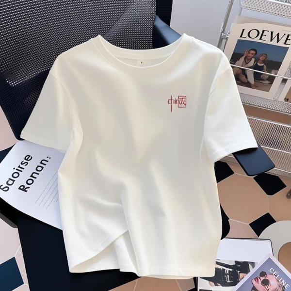 欧货纯棉白色短袖女T恤夏2025新款圆领正肩内搭打底衫上衣ins风