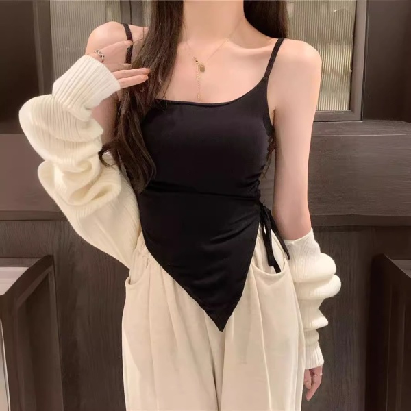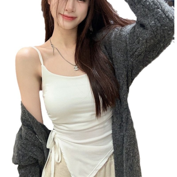 商品属性 [上市年份/季节] 2024年夏季 [主面料成分] 粘胶纤维 [主面料成分含量] 90%(含)-95%(不含) [图案] 纯色 [弹力] 中弹 [是否跨境货源] 否 [款式] 基本款 [流行元素] 其它 [版型] A字型 [肩带样式] 双根式 [衣长] 短款(40cm<衣长≤50cm) [面料名称] 粘胶纤维 [风格] 御姐风 [风格类型] 街头潮人