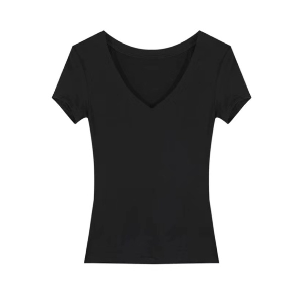 商品属性 [上市年份/季节] 2022年冬季 [主面料成分] 涤纶(聚酯纤维) [主面料成分2] 氨纶 [主面料成分2含量] 30%以下 [主面料成分含量] 95%及以上 [图案] 纯色 [工艺] V领 [是否跨境货源] 否 [款式] V领正肩 [流行元素] 爆款 [版型] 修身型 [衣长] 短款(40cm<衣长≤50cm) [袖型] 常规袖 [袖长] 短袖 [面料名称] 涤纶 [领型] V领 [风格] 机车风 [风格类型] 街头潮人