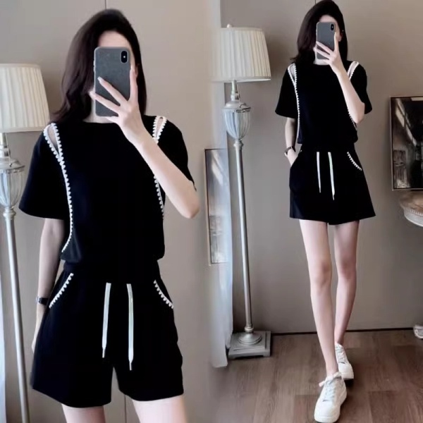 网红炸街运动休闲套装女夏季宽松显瘦时尚减龄短袖短裤两件套洋气