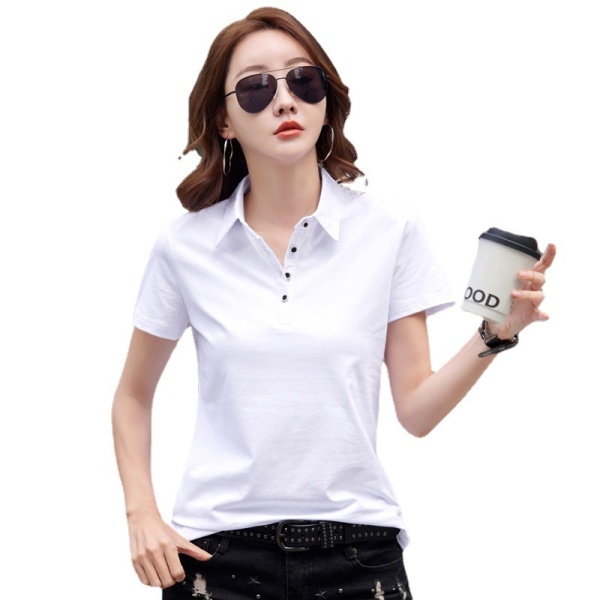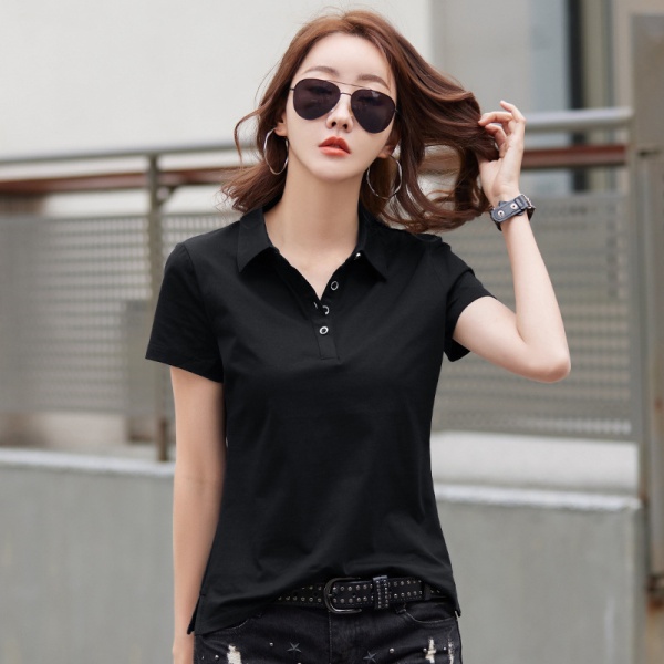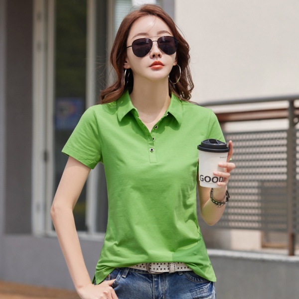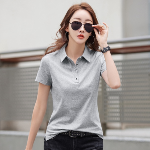 夏季2025新款翻领短袖T恤女装纯棉韩版宽松纽扣Polo衫紫色外货源