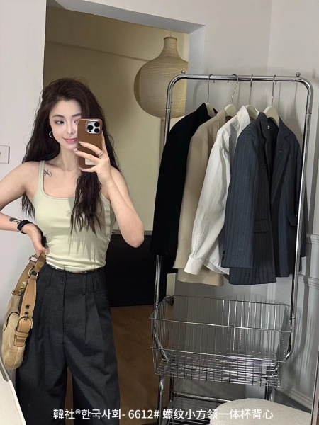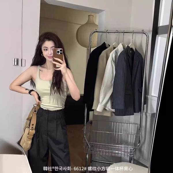 2024螺纹小方领一体背心女一体罩杯内搭外穿无痕休闲吊带背心女