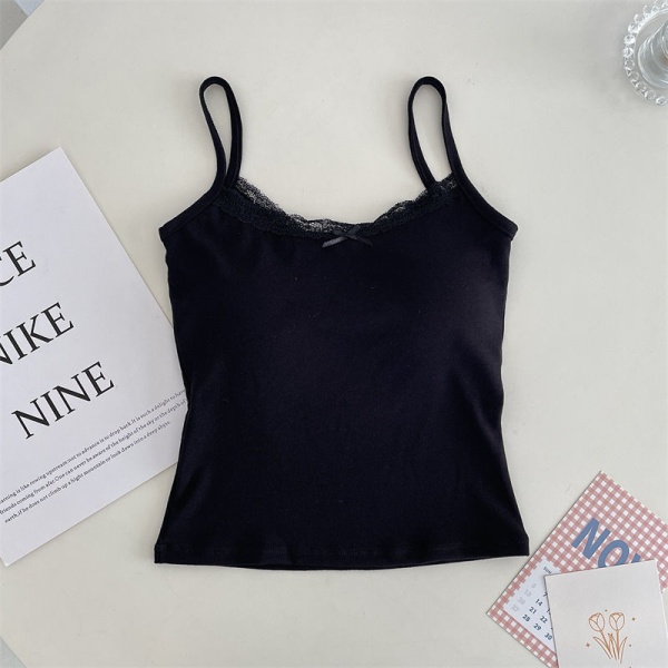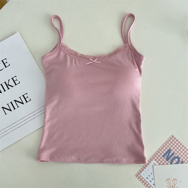 吊带背心女设计感内搭带胸垫内衣蝴蝶结棉美背性感纯欲蕾丝上衣