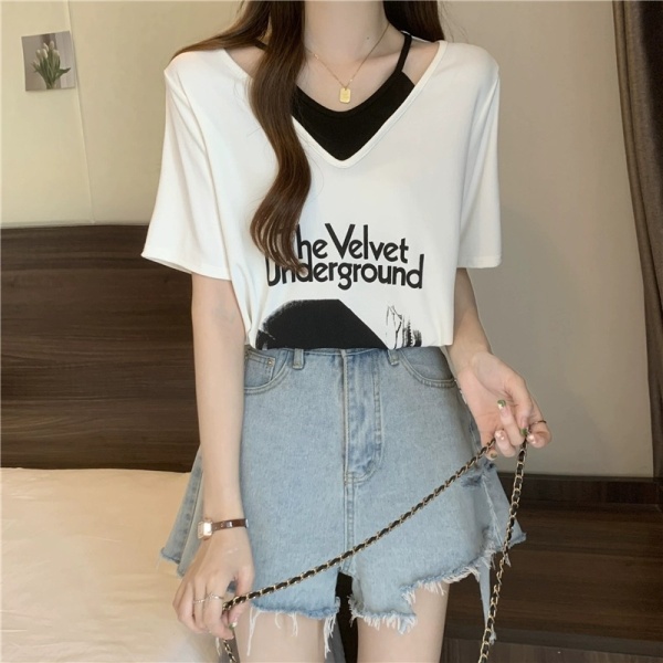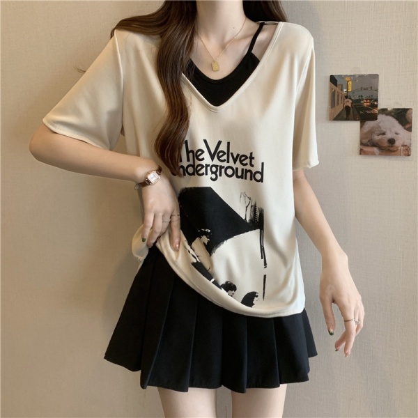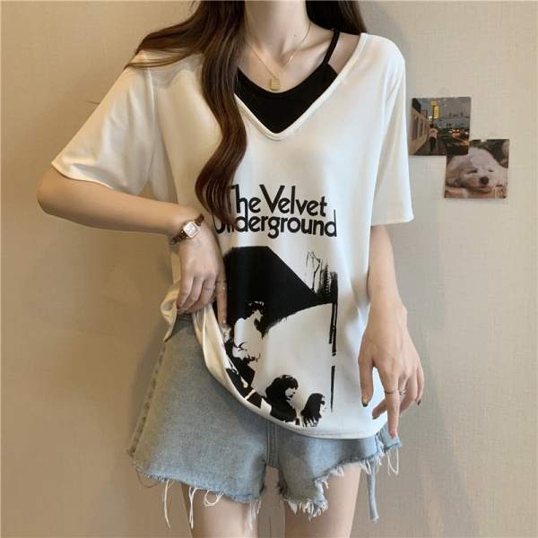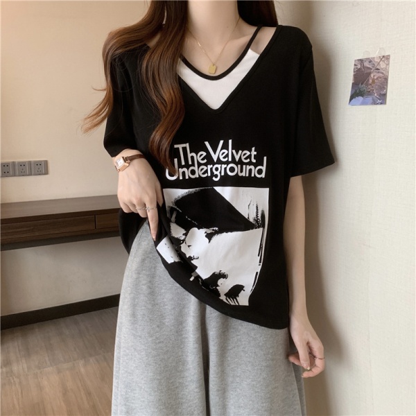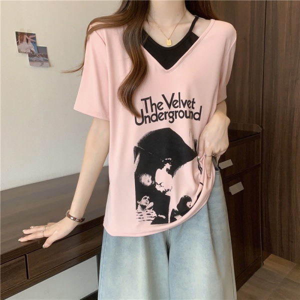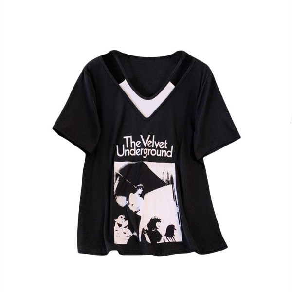 大码女装夏季新款短袖t恤女时尚洋气胖mm宽松显瘦设计感小众上衣