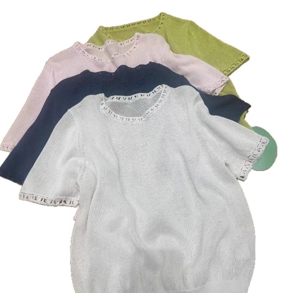 商品属性 [上市年份/季节] 2025年春季 [主面料成分] 有机棉 [主面料成分含量] 30%(含)-50%(不含) [厚薄] 薄 [图案] 咨询 [工艺] 手工钩花 [是否跨境货源] 否 [款式] 套头 [流行元素] 勾花 [版型] 常规 [穿着方式] 套头 [组合形式] 单件 [衣长] 普通款(50cm<衣长≤65cm) [袖型] 常规袖 [袖长] 三分袖 [门襟] 套头 [面料名称] 棉 [领型] 圆领 [风格] 休闲风 [风格类型] 日韩休闲