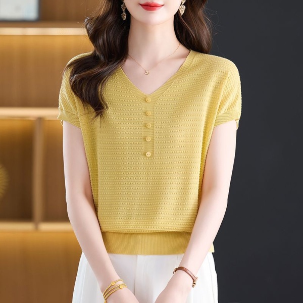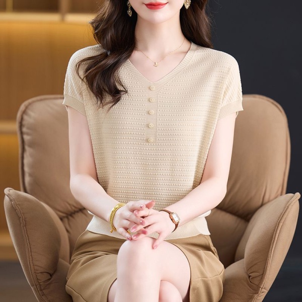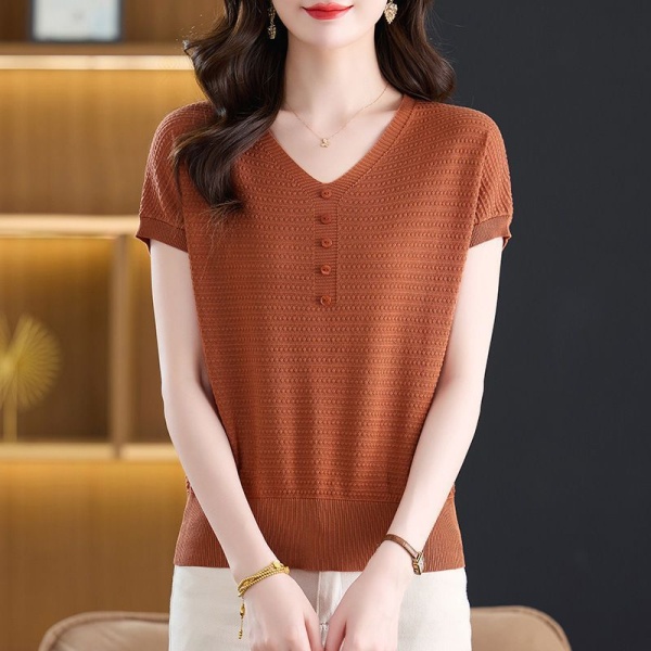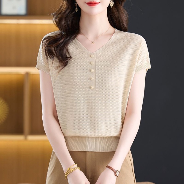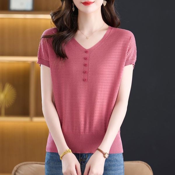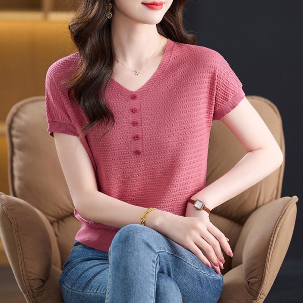 鸿3570夏季新款大码短袖外穿冰丝针织衫夏装上衣洋气宽松薄款T恤